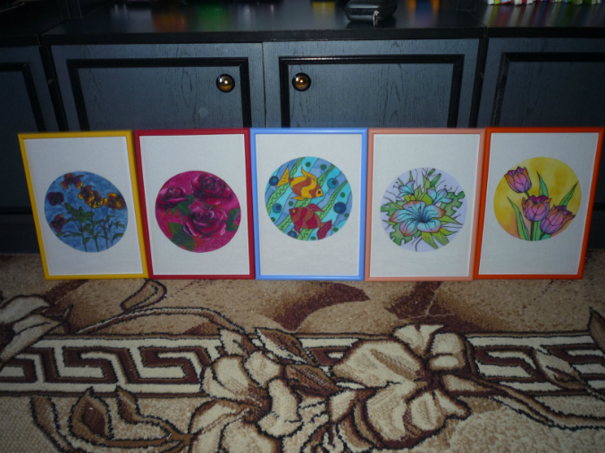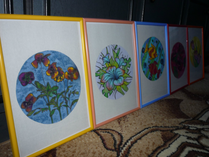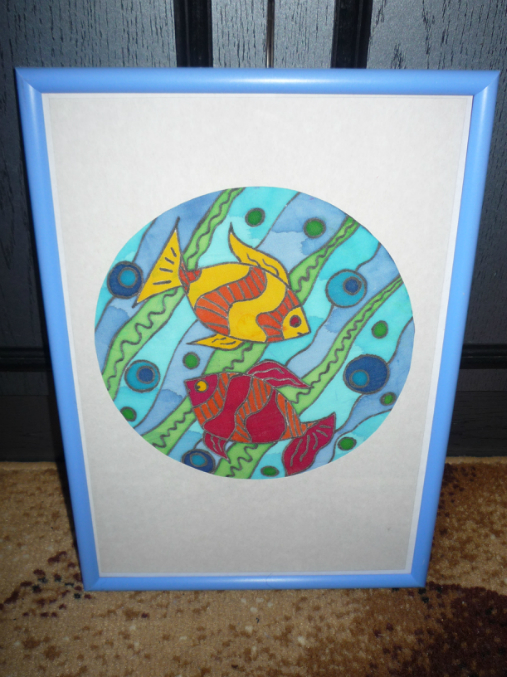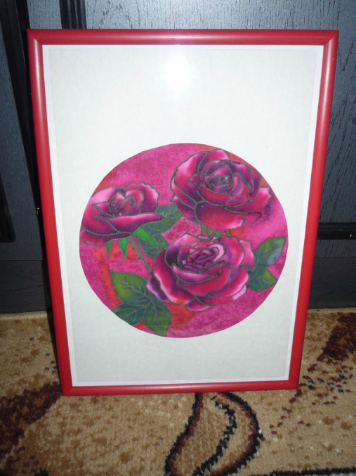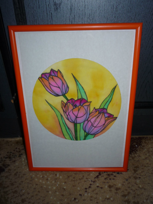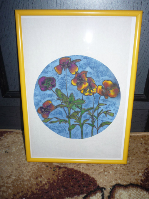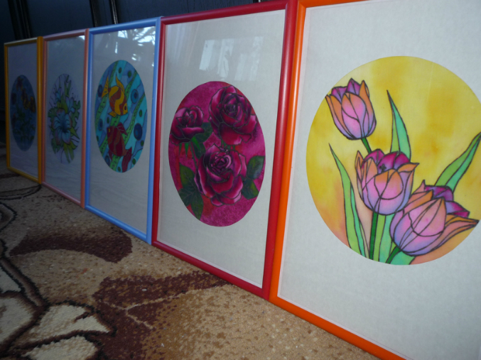 Сидела делала задания по батику для универа...понравилось мне это дело и тут я подумала:"А почему бы не нарисовать картинку домой?!".Так родилась картинка с рыбками...и только потом меня озарило:"А почему бы не сделать картины в подарок к 8 марта с цветами!?".И так родились все остальные...Фотошоп у меня слетел,чтоб красиво обработать фото,поэтому как есть...