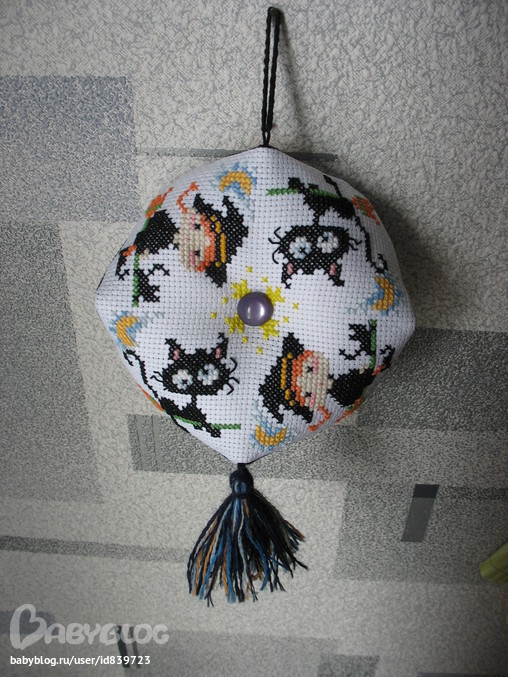 бискорню, представляет из себя многоугольник — подушечку с несколькими неравными углами, однако довольно симметричную. Такая подушечка, ласково называемая еще и «кривулей», может служить игольницей, брелочком, подвесочкой, маячком для ножниц и даже кулоном. Если ее красиво украсить, то она будет уместно смотреться и на новогодней елочке.