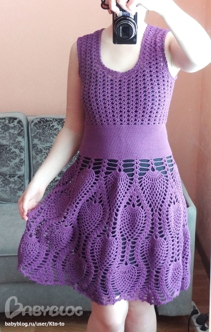Очень приятен Ваш отзыв! Платье связано только крючком. Пояс -это столбики без накида.