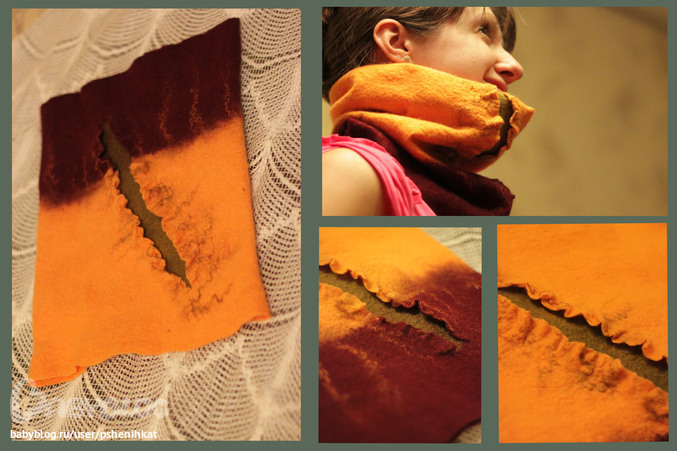 Фелтинг (валяние шерсти)Мой шарф пушист и полосат.