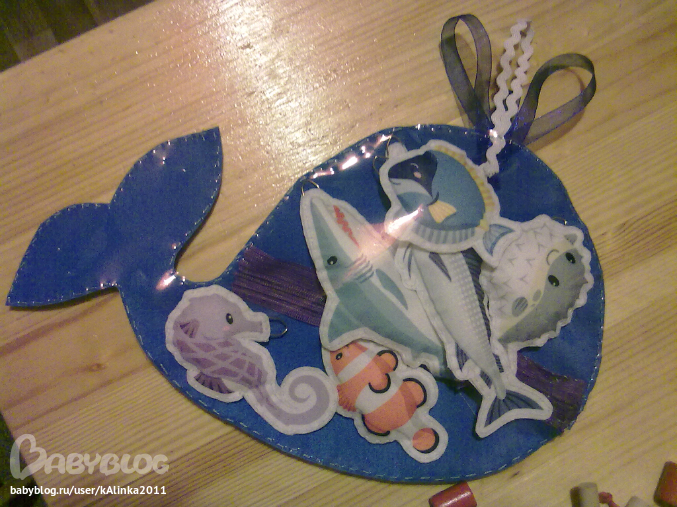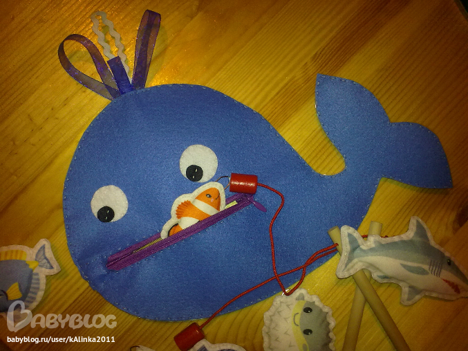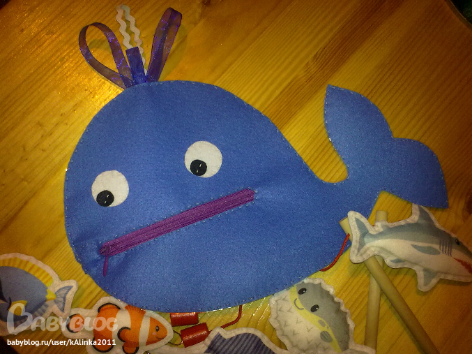 Фетркак долго выкройка висела на холодильнике и вот сегодня мы с Сережей сшили кита за пару часов совместного творчества)))) молния нашлась только такого цвета. цвет фетра выбрал сам Сережа.