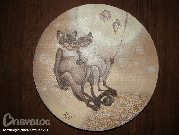2. Котики твердой рамки правда нет но оформление появилось. размер см 20 примерно, холст, масло. Круглые картинки по 800р.