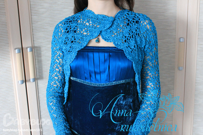 Пользовалась только схемой, описание там от какого-то совершенно другого шрага, ничего с этим болеро не имеющее. Еще на осинке вот тут вязали