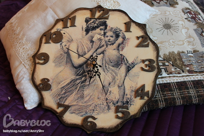 Спасибо!!! На самом деле все не так сложно))) Загатовка, цыфры и стрелки - куплены в магазине для декупажа, а сама техника не такая сложная после просмотра нескольких видео на ютубе))) У меня под эти часы уже целая комната - тумбы, столик..))) Позже выложу))