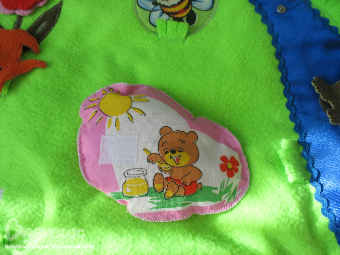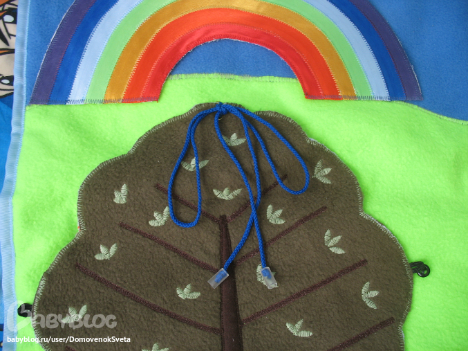 Кстати, дерево шуршит, проложила полиэтилен внутри. Пчелка просто нашита, внутри спрятала деревянное колечко, чтобы детки пальчиками шурудили.