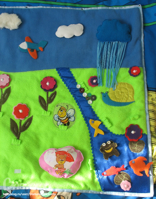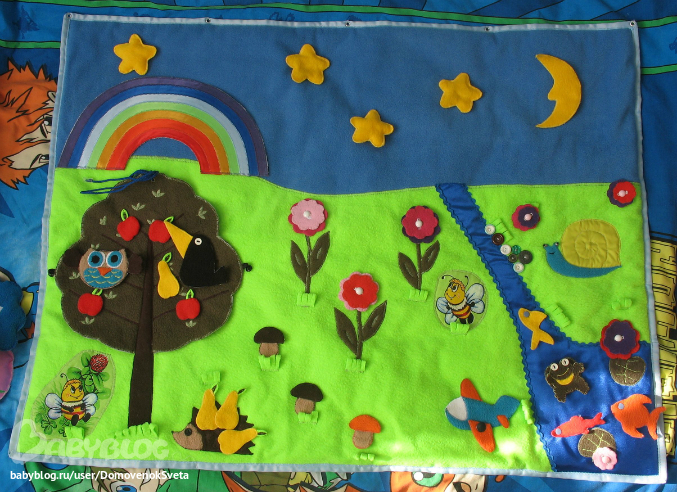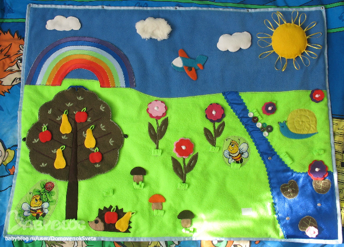 Попросили в детском садике сшить сенсерное панно. Думала-думала, и пошла искать на любимом ББ варианты всякие. Возможно кто-то увидет свои идеи - прошу сразу тапками не кидаться. Спасибо большое Елене Бикбаевой, подписалась на рассылку уроков развивающего коврика.