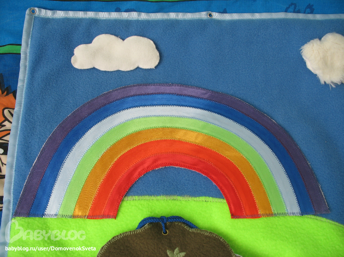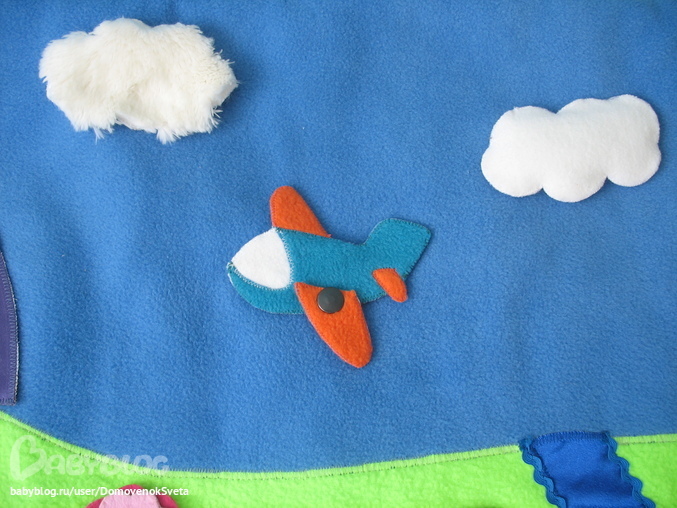 Небо: Радуга, облока, солнышко и самолет на липучке. Внутри солнышка - пищалка :)))))))