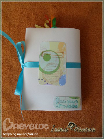 Альбом сделала на основе акварельной бумаги, использовала два листа двухсторонней бумаги, для декора разноцветные атласные ленты и люверсы. Совсем забыла :) сделала еще несколько штемпельных оттисков, но это больше для момента, когда я фотографировала альбом без фото. Ах, да, и еще пара оттисков на задней стороне обложки - дата, журналинг и "ручная работа". В альбоме размещается 10 фотографий. Изначально брала размер 10х15, но многие пришлось обрезать, практически до 9х14. Я сама виновата, надо было тихо-спокойно попробовать новеньким дыроколом сделать подложку под фото в черновом варианте, опытным путем выяснить каким размером она должна быть, а уж потом кромсать лист. Но это же надо было сидеть пыхтеть и делать, а у меня же горит, мысля прет :) Зато на будущее урок. В итоге пришлось подобрезать фото, но сюжет от этого не пострадал. Фото-ярлычки тоже уменьшала, но не так сильно, здесь я не учла, что им нужно пространство, чтобы свободно въезжать и выезжать из кармашка.
