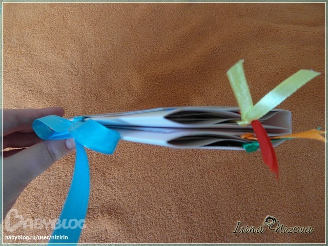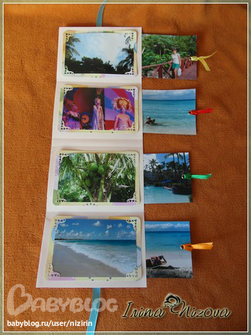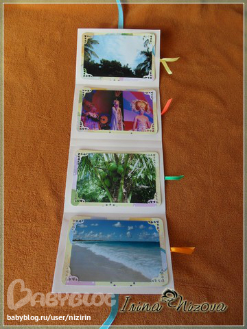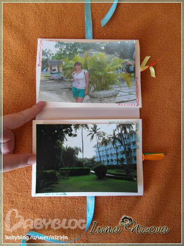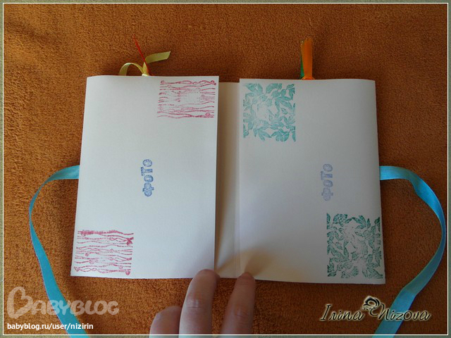 Развязываем бантик и раскрываем альбомчик: место для двух фото 10х15 см., без подложек.