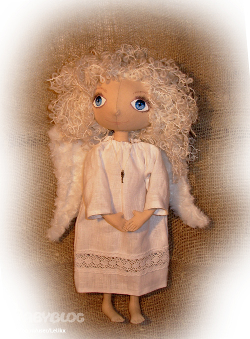 Обалденный какой анегочек!!!! Классный подарок!!!! А из чего крылышки сшиты? Ну очень понравился!!!!Мне тоже нужно сшить ангела, не получается пока, ткань темная, глаза девчачьи получаются....