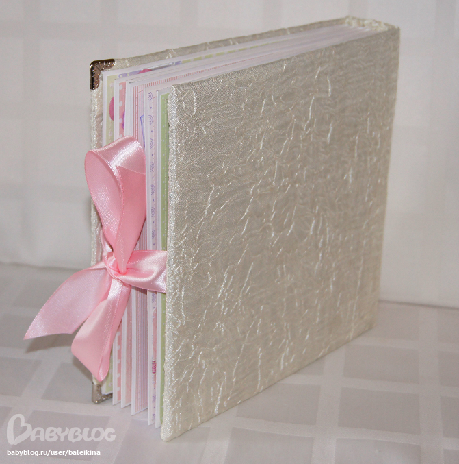 Альбом размера 20см*20см, по обложке 21см*21см, 12 страниц на 20 фото 9*13. Есть место под фото Узи, бирочку, волосики, так же для записи веса, роста и зубок.