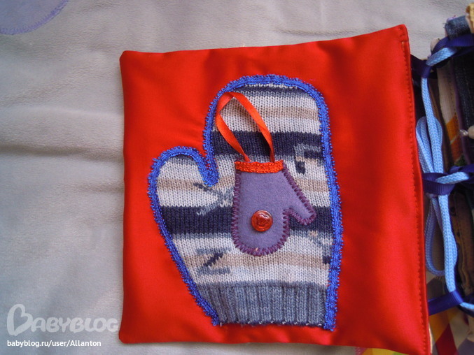 На большой варежке нашита маленькая варежка, в ней ключ, "открывать двери в доме"