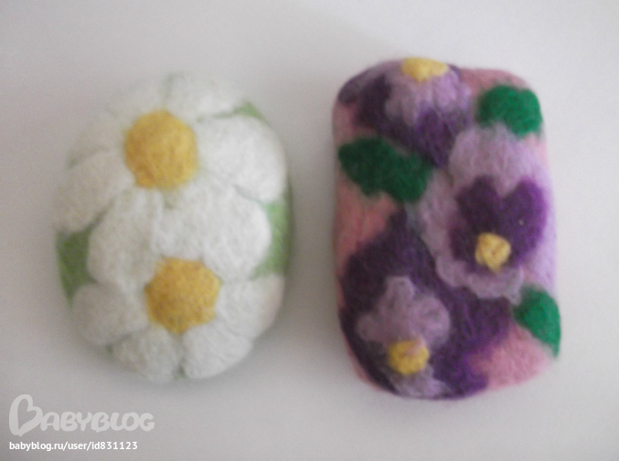 Фелтинг (валяние шерсти)Вдохновившись коментариями в прошлом посте, я решила дополнить подарки для своих девочек своими мылками и вот сто вышло