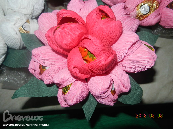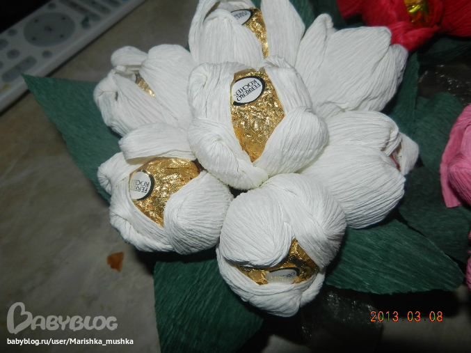Маришка, для букетов из конфет создан отдельный раздел http://www.babyblog.ru/community/lenta_cat/rukodelie/4006!
