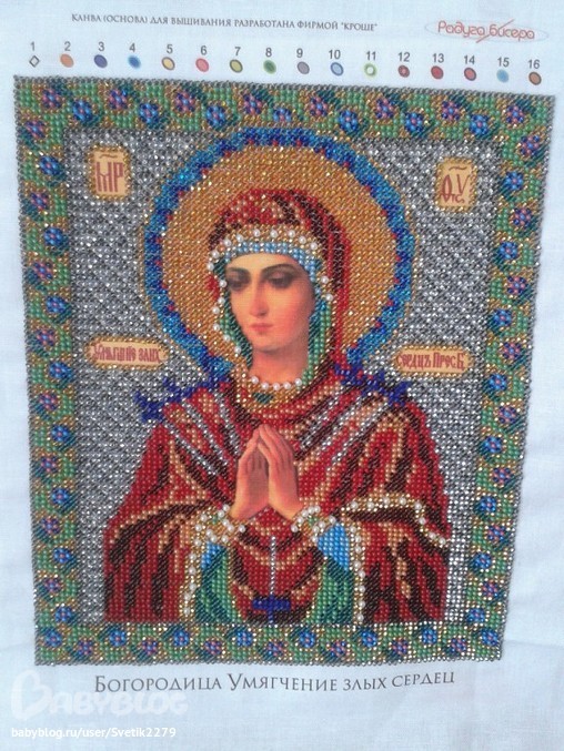 КрасиваЯ!!! У меня тоже такая есть, но я пока ее не трогаю. В церковь ни как не дойду) а за сколько вы ее вышили?