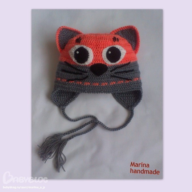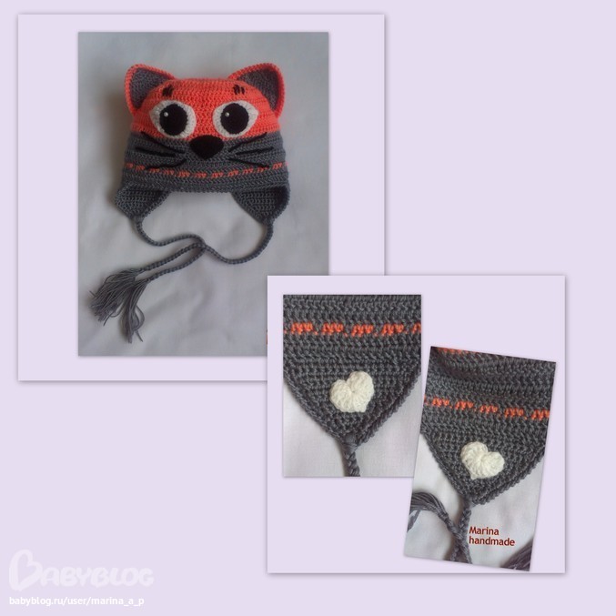 Эта шапочка. связана для полуторагодовалой принцессы. Курточка у неё вся в сердечках, вот и я решила пришить на ушки-завязки по сердечку.