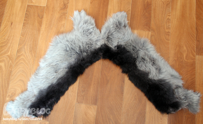 По размеру примерно 66Х17 см одна половинка. Шкурки качественные.