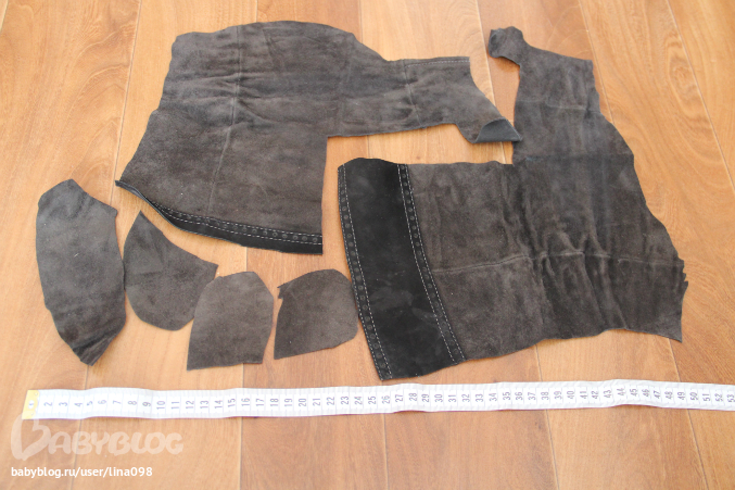 Во-вторых, кусочки замши. Серо-коричневого цвета. Небольшие,конечно, но,вполне могут пойти в красивые изделия (правда, рука не поднимается их выбросить!). Сфотографировала с линейкой, чтобы можно было определиться по размерам: