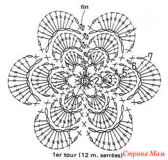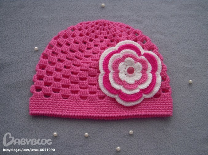 Цветочек вообще без схемы делала..но вот эта схема очень похожа на то, что делала. А шапочка по схеме ниже