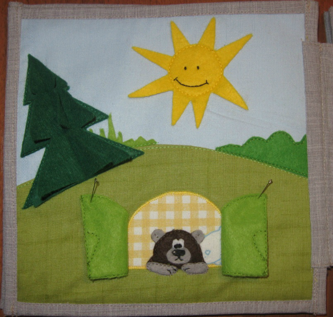 Весна. Ёлка объёмная, лучики солнца тоже можно потрогать, в берлоге просыпается медведь.