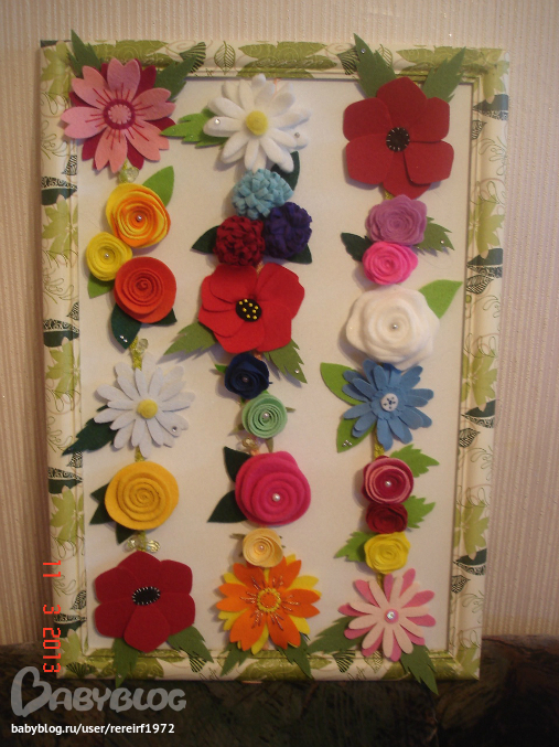 Красивая работа!! Думаю и крапотливая? Анюта а Вы цветы пришивали или приклеивали?