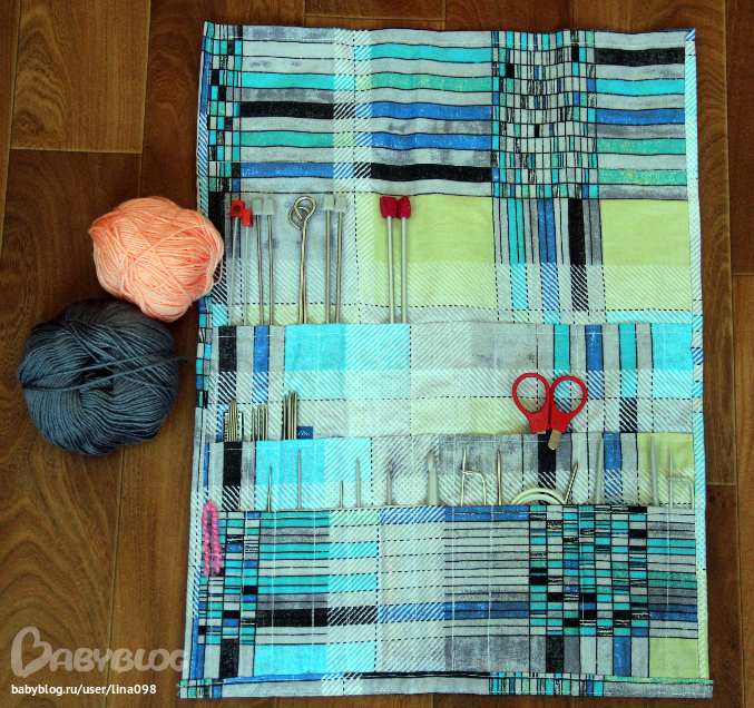 А из остатков ткани НАКОНЕЦ-ТО соорудила себе чехол для хранения спиц и крючков (как давно у меня родилась эта идея и оставалась только в голове!):