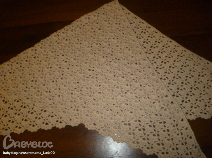 Эту шаль вязали девочки он-лайн, давно на нее засматривалась и наконец связала, вязалась шаль легко, быстро, результатом я довольна)