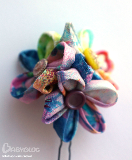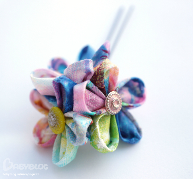 Шпилька-букетик из нежнейшего японского хлопка с вышивкой