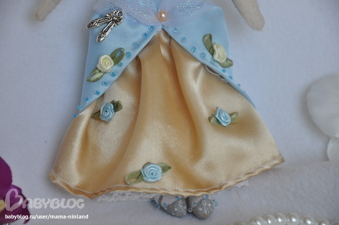 теперь стала настоящей нежной очень доброй Золушкой! все-таки шелк для тыквоголовок не годится,только для ангелочков, тильдочек и маленьких куколок. теперь выставляю её на продажу (точнее соискание дома, продажа - не то слово для куколок, созданных с душой и любовью), прошу на просмотр