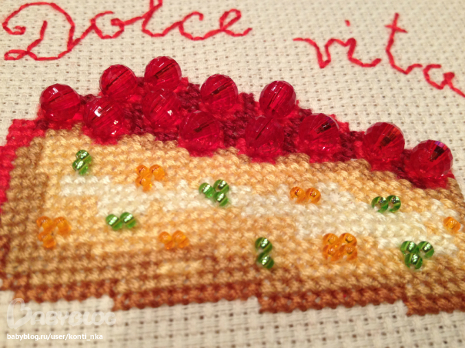 ))) я в пятницу еще из багетки пироженки заберу..вот глядя на ту вышивку (из этой же серии, только большая) я пока вышивала мне все время сладенького хотелось))) пора на цветочную тематику переходить