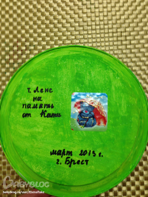 А это Катюша (старшая дочь) сделала специално для меня. Спасибо ей большое. Обязательно придумаю как повесить на кухне, на подставке на подоконнике не получается, там Рики будет ронят ее.