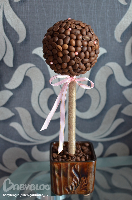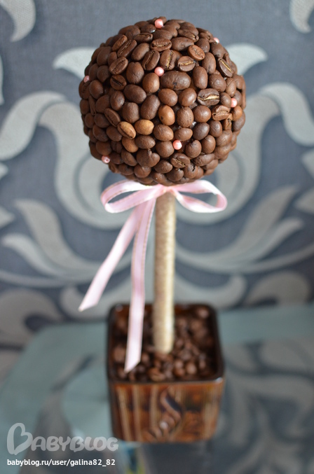Моё первое кофейное деревце. Делала его долго, зерна попались не очень качественные, много мелких. Кстати использовала Черную карту. Хотела его подарить, но что-то так жалко стало, что решила оставить себе