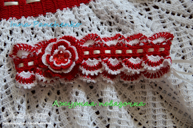 СПАСИБО за комментарий. Схемку на платье я выложу, а вот повязочка - это любой узор воланчиков, ракушечек... и Ваша фантазия