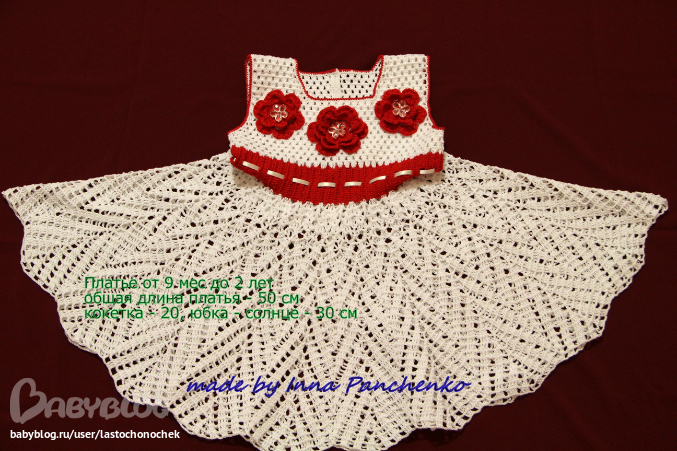 Мне очень понравилась схемка на юбку платья, спасибо автору за идею, которую я попыталась воплотить уже в своем изделии. Пряжу я использовала Анна 16