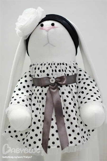 Здравствуйте! подскажите пожалуйста сколько стоит зайка в платье в горошек и какой у нее рост