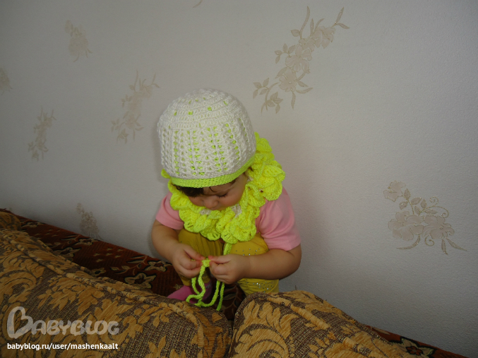 Я связала за зиму две пары длинных ажурных перчаток, два шикарных снуда - один серебристый, другой - ярко красный плюс митенки к нему, но все не могу улучить момент и сфоторгафироваться в этом. Месяц назад взялась вязать плед куме, которая рожает в мае, а тут оказалось что две моих двоюродных сестры в марте должны родить, а у меня правило такое - когда я кого-то из близких рождается ребенок я обязательно дарю что-нибудь связанное собственноручно, вот и навязываю в срочном порядке им, плед пришлось пока забросить. Решила связать два комплекта - чепчик и кружевной уголок, один уже связала, сейчас второй начала, одна из сестер недавно родила, на след. неделе выписывается уже. Уже честно говоря, жалею что взялась за это все, еле успеваю, а бросить уже жалко, раз начала. Ну и в результате родной ребенок опять всю весну проходит в покупной шапке, вообще дико ...