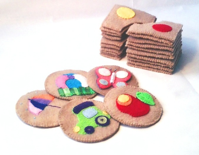 Также на каждой центральной карточке есть один сенсорный элемент (бусина, лента, пуговица...) Что способствует дополнительному сенсорному развитию.