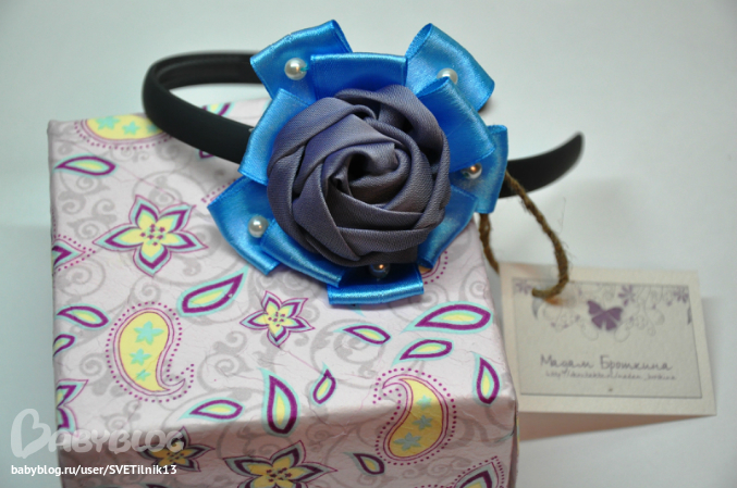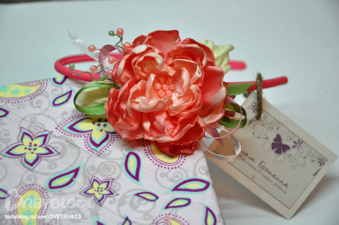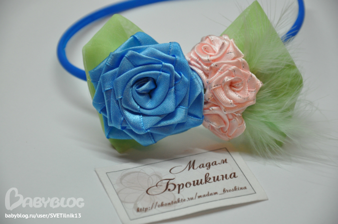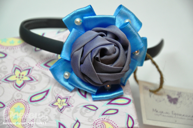 А еще не поделишься тайной? Ты когда делаешь цветок из ленты (ободок с синим и персиковым цветочками и перышками) , ты ленту подхвтываешь ничточкой и низ плоский или объемным получается?