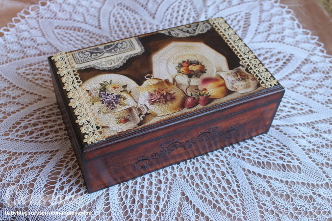 Ясмин, какая красивая чайная шкатулочка!!! Прелесть! Мне нравится, когда кружева добавлены, сразу такая уютная, домашняя вещица получается!