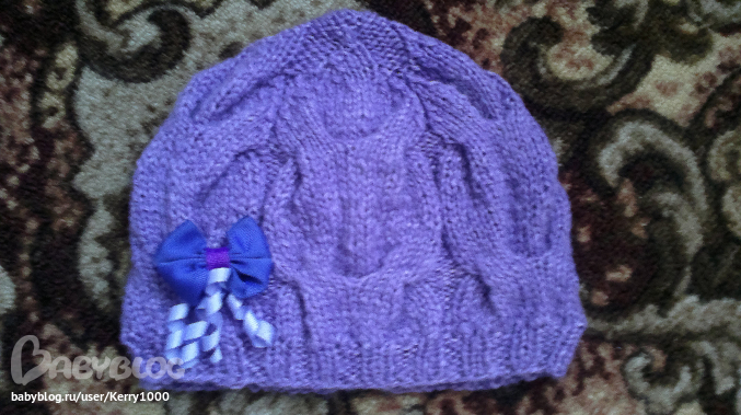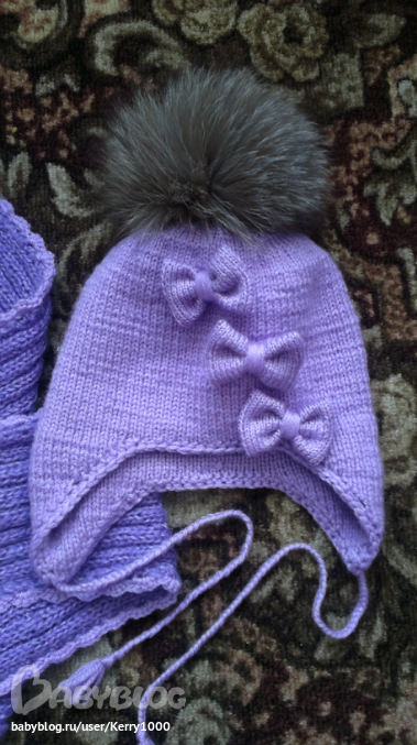 Хорошие первые работы!! Шапочка двойная тепленькая )) Расскажите, пожалуйста, как бантики сделали?