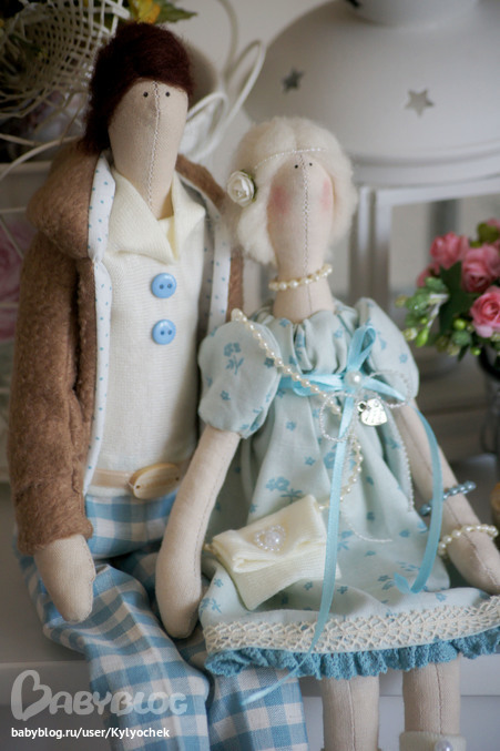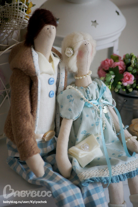 Как и обещала, показываю ещё одну парочку сшитую на этой неделе. Тоже в нежных тонах, но в более современных нарядах (по желанию заказчицы).