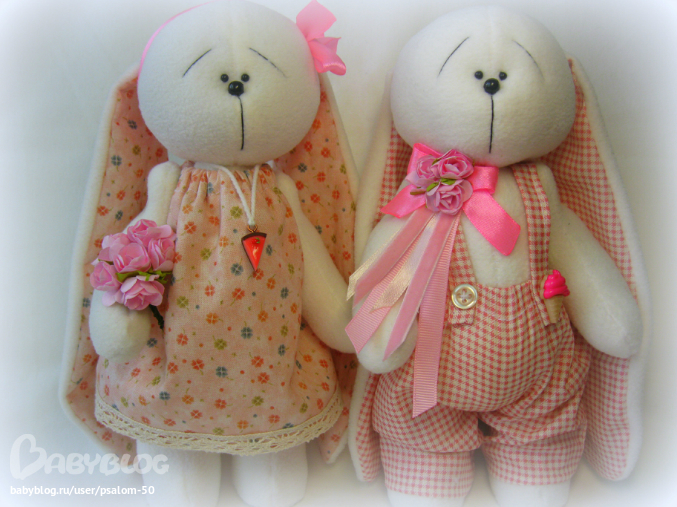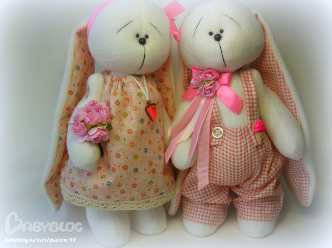 Светочка! Ну до чего же зайки у вас очаровательные получаются! Один другого красивей! Такая нежная парочка! А какие зайки по высоте (в см)?