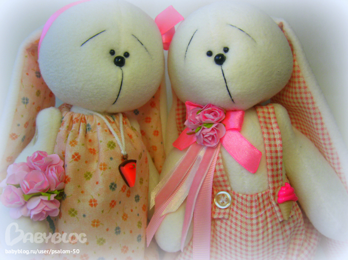 Сладкая парочка.....Очень сладкая!!!!Такая аж =))пироженно-мороженная,конфетно-карамельная парочка зайчат,сшиты на заказ.Заказчица разрешила все сделать на свой вкус,я творила и отдыхала....