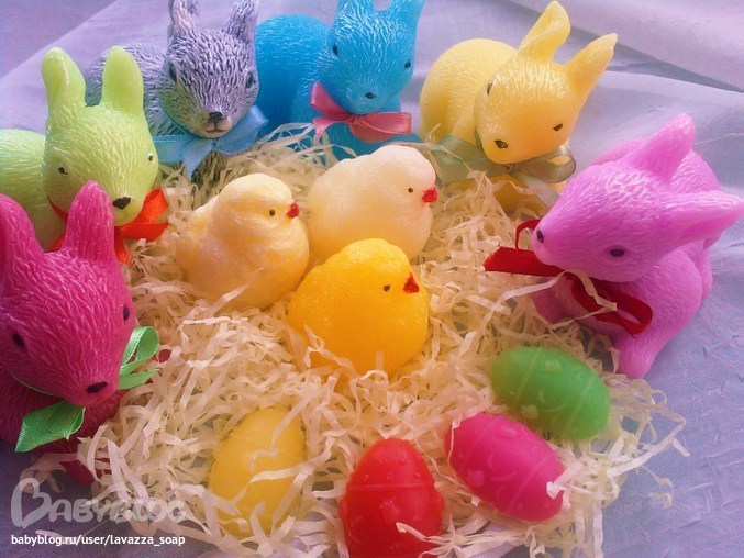 Мыло и косметика своими рукамиХоть Пасха и далеко, а готовиться и пополнять каталог заранее надо) желательно)))) ну хоть чуть-чуть)))) Получилась Пасхальная живность)))