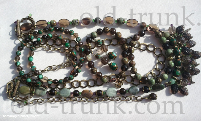 Комплект состоит из Колье - трансформера (разбирается на колье, чокер и 2 браслета) и пары серёг.