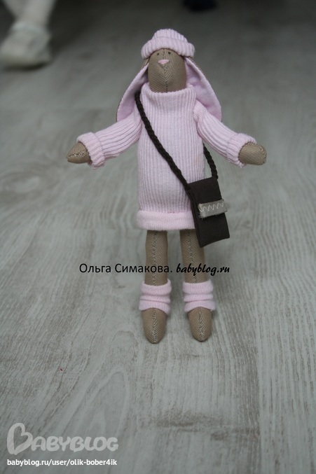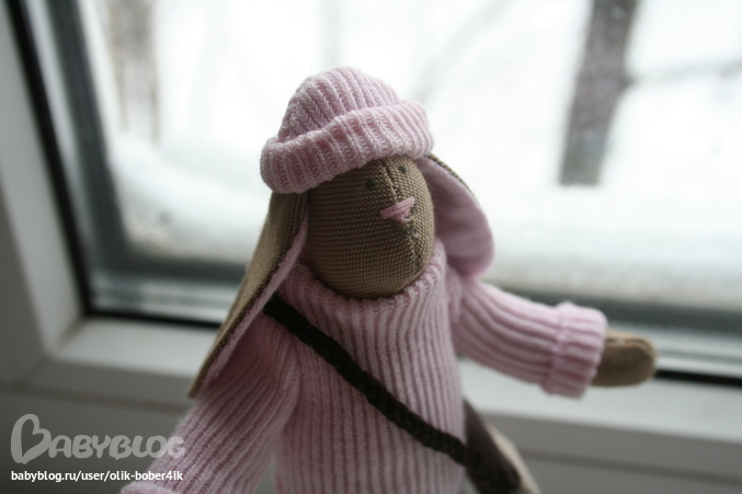 Вдогонку к моему предыдущему посту http://www.babyblog.ru/community/post/rukodelie/1872271 . Тренировочный самый-самый первый вариант. Зайка-хранитель сумки (сумка на коляску в процессе завершения)). Сшилась за одну ночь, полностью вручную.