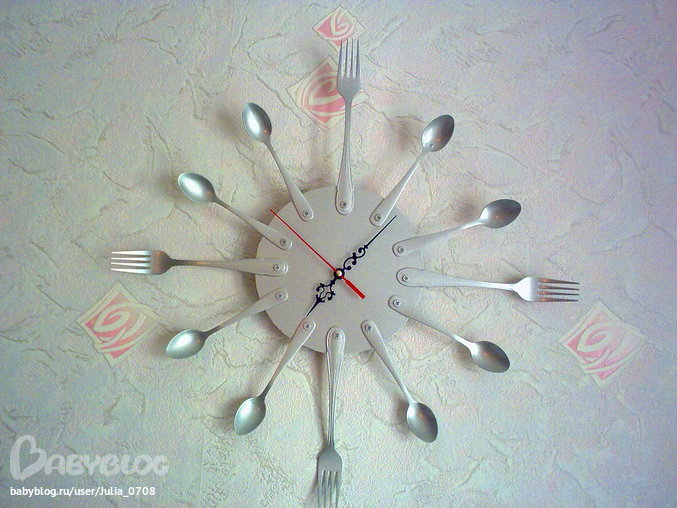 Ложки и вилки самые-самые простые. Мы в них просверлили отверстия. Также отверстие просверлили по центру для часового механизма.
