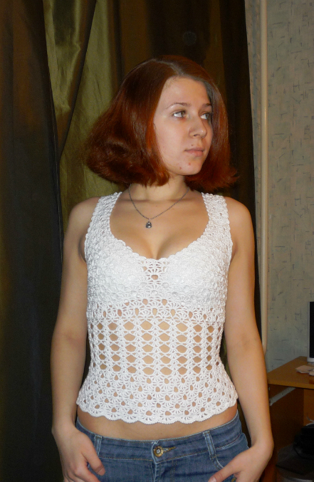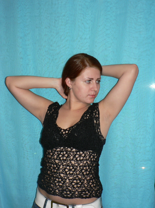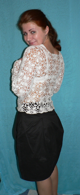 Кофточка связана еще в школе, в начале 11 класса, на выпусные экзамены надевала ее, на недоумение учителей отвечала, что это белая блузка и я ее так вижу :)