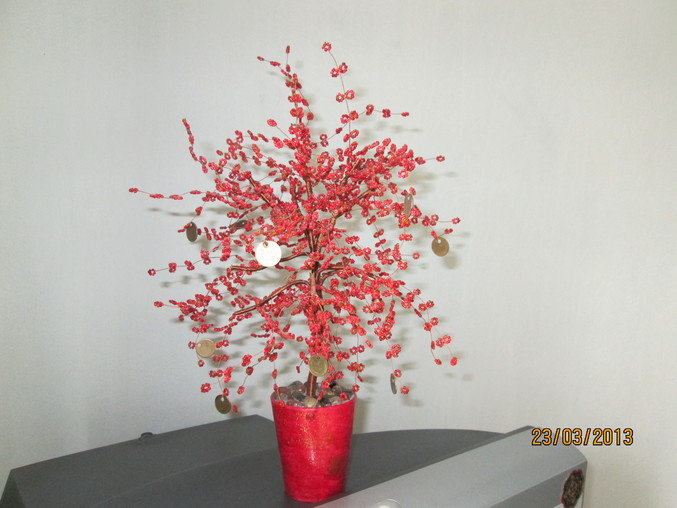 Бисер. Бисероплетение. Украшения из бисера.Еще будучи беременной, сплела такое денежное дерево. Да как-то всё времени не было выложить. Плела 2 дерева, одно себе, а другое родителям на 27-летнюю годовщину свадьбы, которая так и называется свадьба красного дерева. Это моё первое бисерное творение. МК взяла с интернета, но конечно со своими дополнениями.Как вам?
