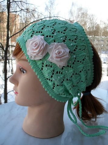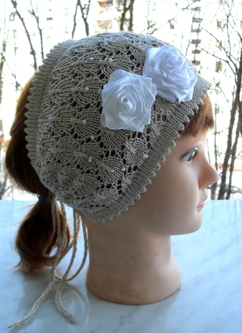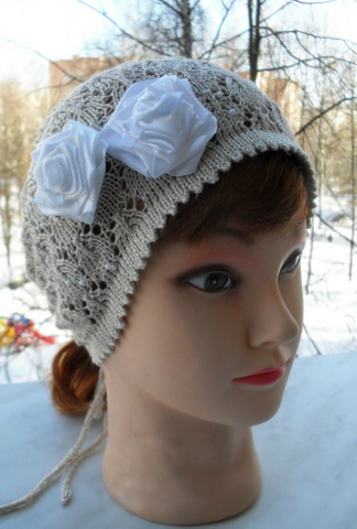 Летняя повязка, не имеет размера-сзади завязывается на завязках. Украшена атласными розочками и бусинами. Розочки-на липучках, при стирке-снимаются. Повязка высокая-и отлично защитит от солнца и ветра.Высота-17см. Продаю по 250р.+50р. пересылка по России.